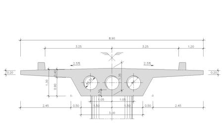 Largura do tabuleiro - 9m